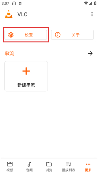 2、【VLC】更多界面点击红框标注的【设置】按钮,进入应用设置页面调整相关参数。