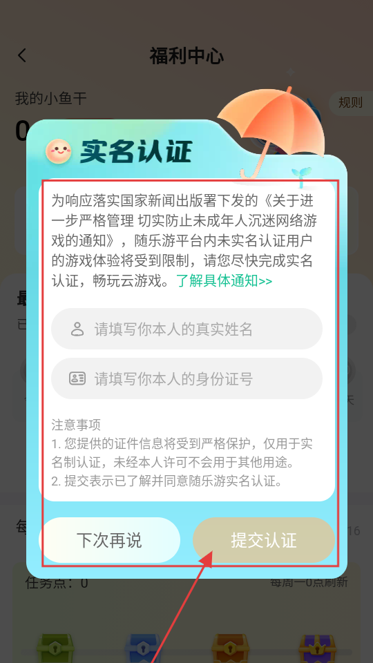 3、若弹出实名认证提示,可根据情况选择【下次再说】或填写信息后点击【提交认证】。
