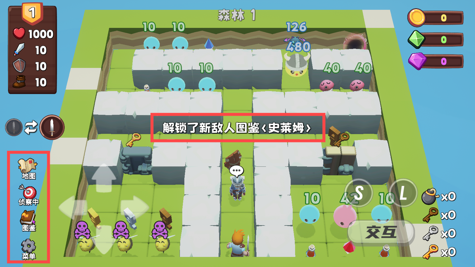 2、进入游戏后,留意屏幕左侧功能栏,善用【地图】查看关卡布局,通过【图鉴】查看已解锁敌人,击败怪物可解锁新敌人图鉴。