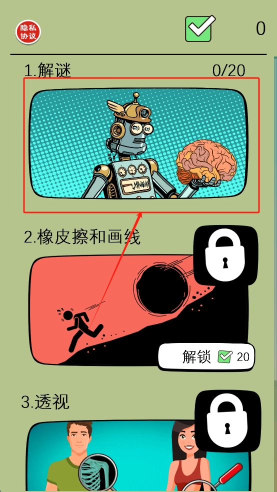 4、求助系统:卡关时可观看广告获得提示,前三次免费,提示会以漫画形式给出线索。