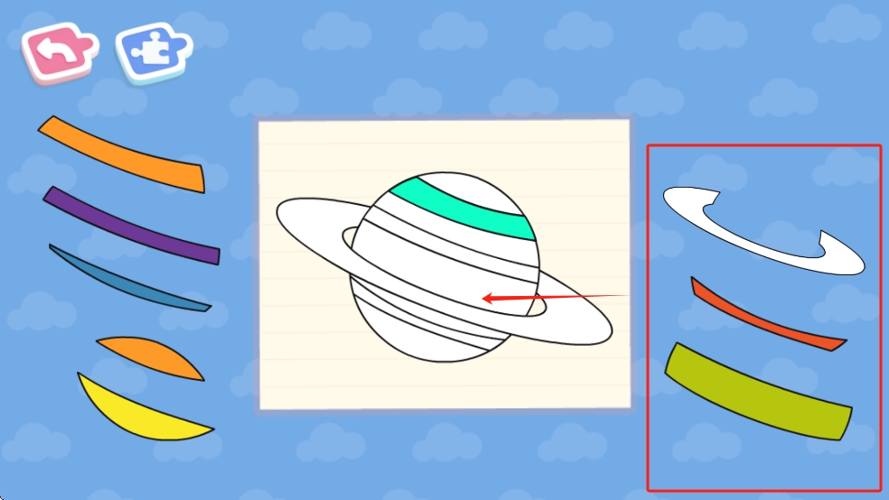 3、创意拼图工坊:提供空白画板和素材库,小朋友可以自由组合创作,保存作品到专属画廊,培养艺术创造力。