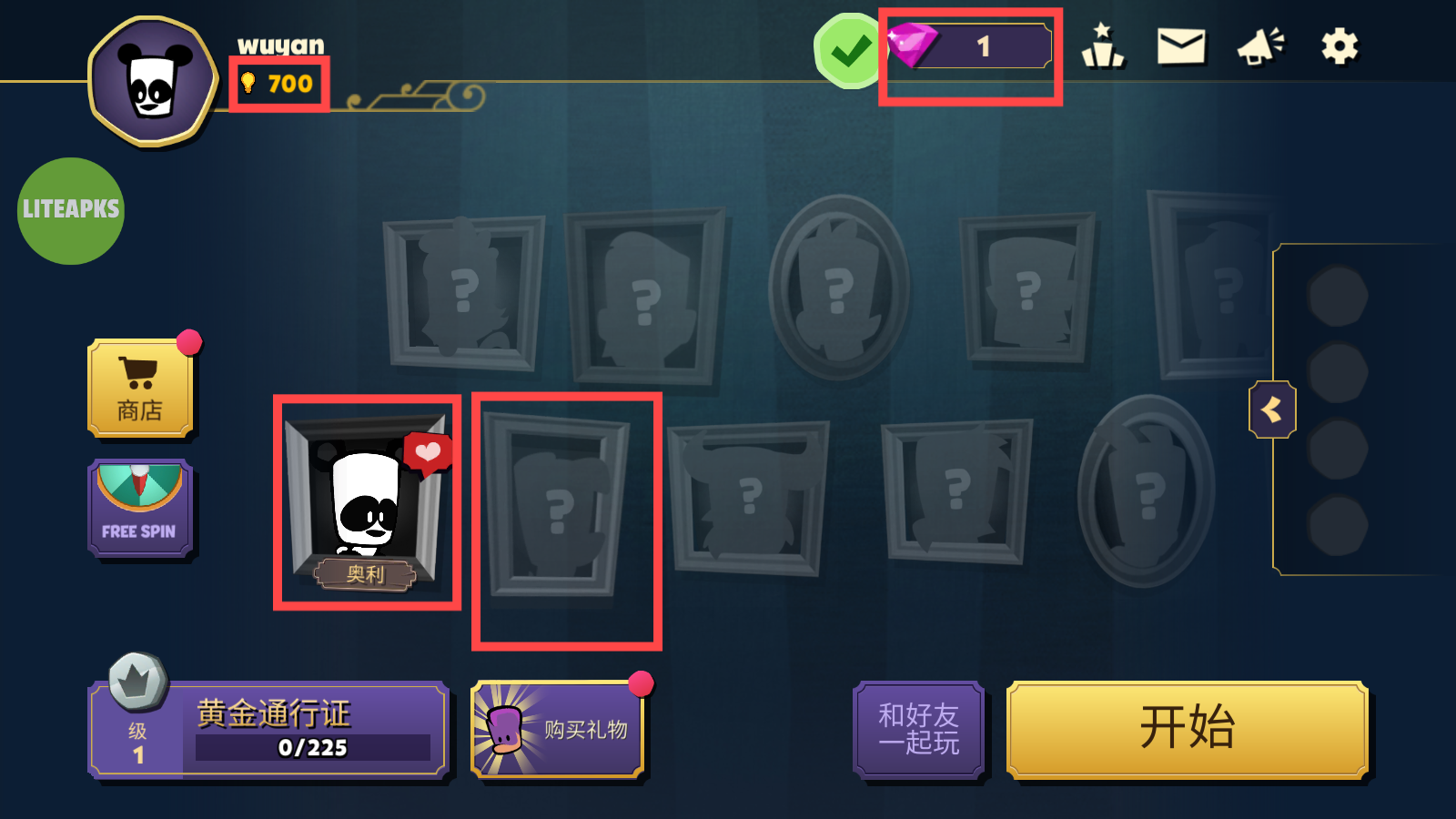 1、留意界面【金币】【钻石】数量,熟悉已解锁的【奥利】角色特性,为后续游戏做准备。