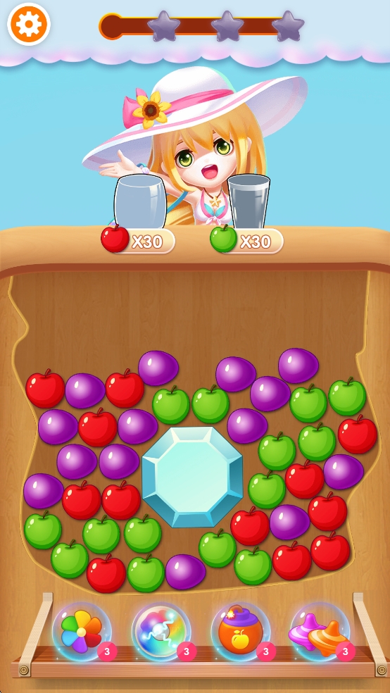 2、闯关模式设有不同目标要求,有的需要收集特定水果,有的要在限定步数内达到分数。