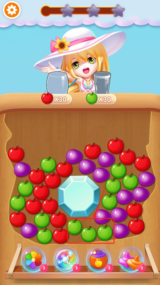 2、点击水果进行消除达到目标数。