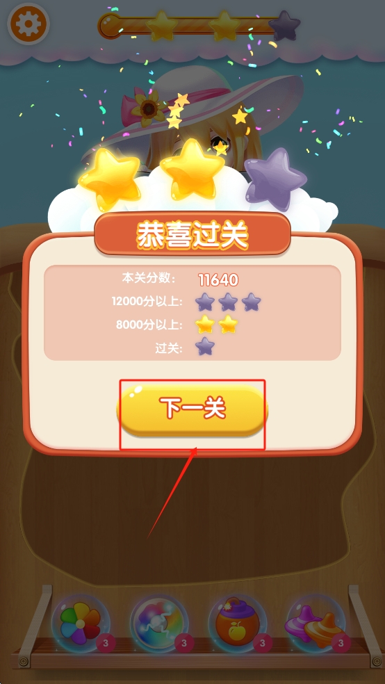 3、点击“下一关”继续游戏。