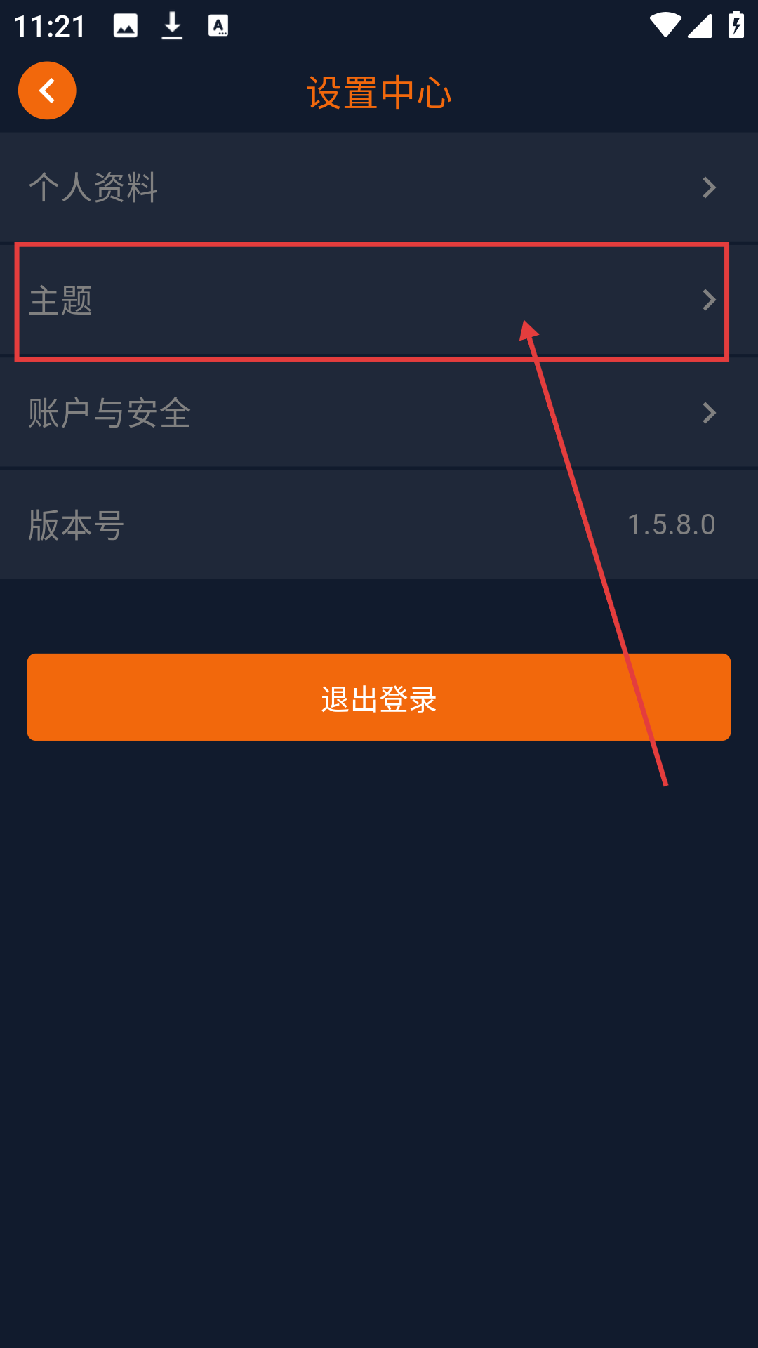 2、进入设置中心页面后,点击【主题】,可进入主题选择页面哦。