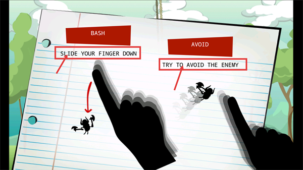 2、战斗中按【SLIDE-YOUR-FINGER-DOWN】操作进行攻击,同时遵循【TRY-TO-AVOID-THE-ENEMY】提示规避敌人。