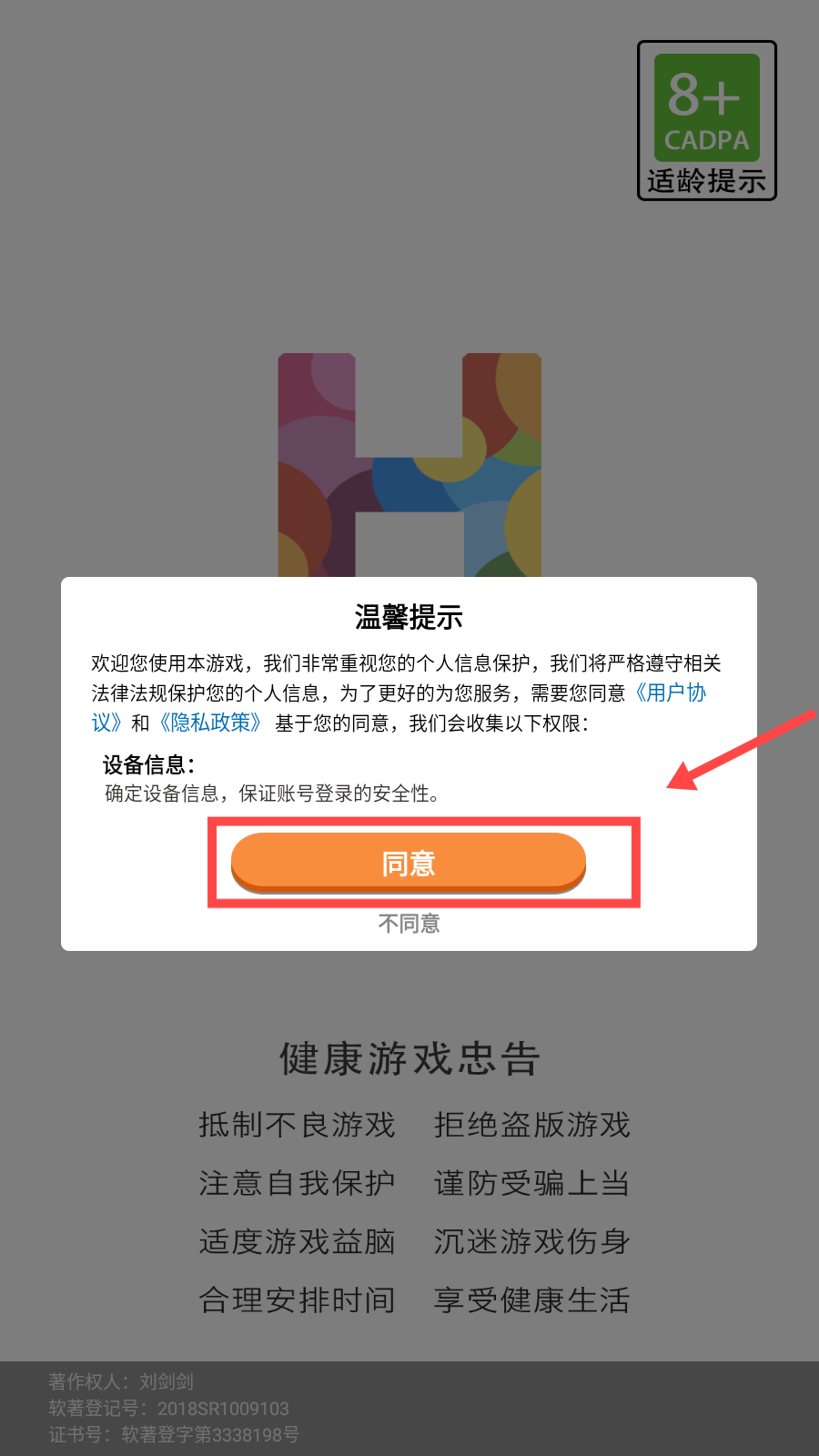 1、打开游戏,点击【同意】。