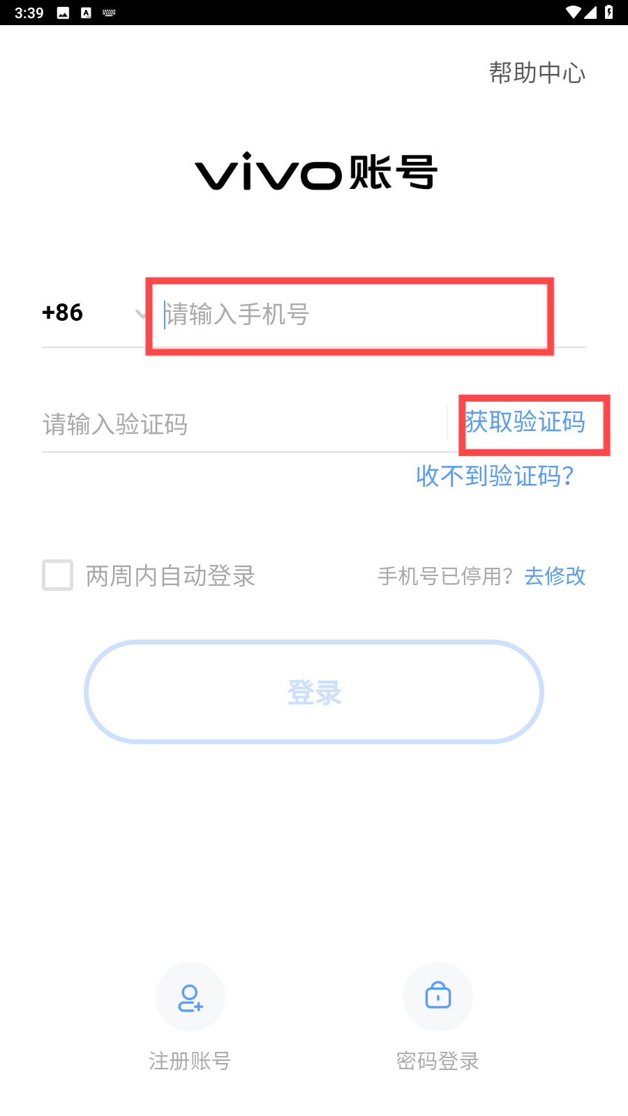 2、输入手机号,点击【获取验证码】。