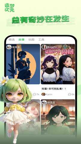 2、在造梦次元APP中,用户可以与次元角色互动,这些角色将成为用户的专属解闷搭子,给用户讲故事、陪玩游戏、生成专属图片等,一起开启欢乐派对。