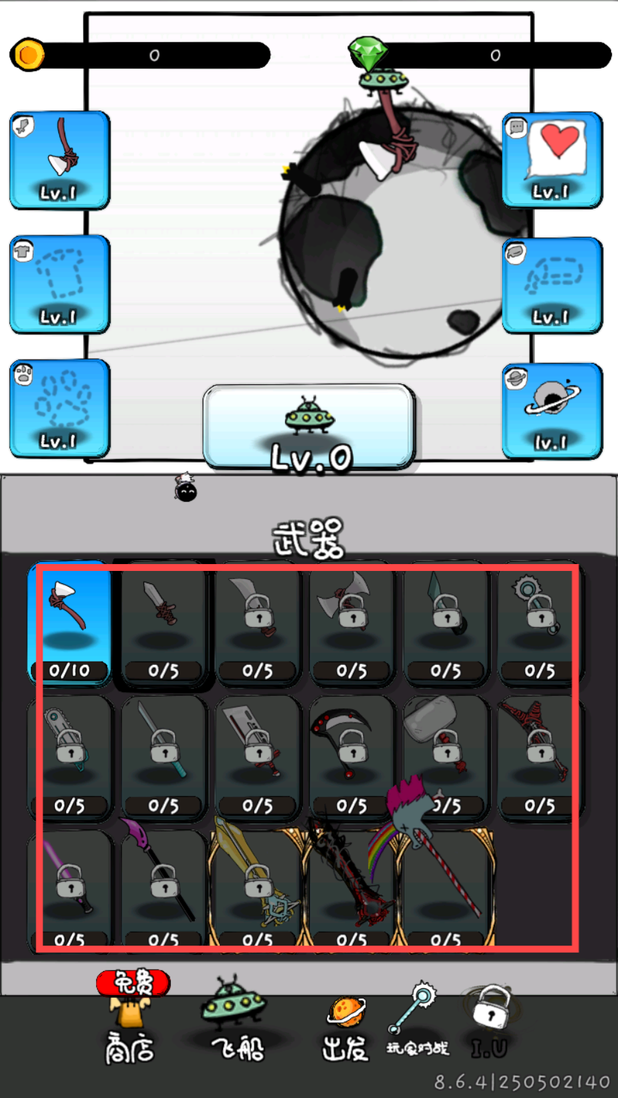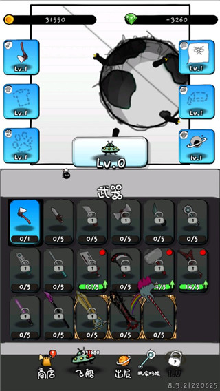 3、可以通过解锁各种道具,装备在飞船上。
