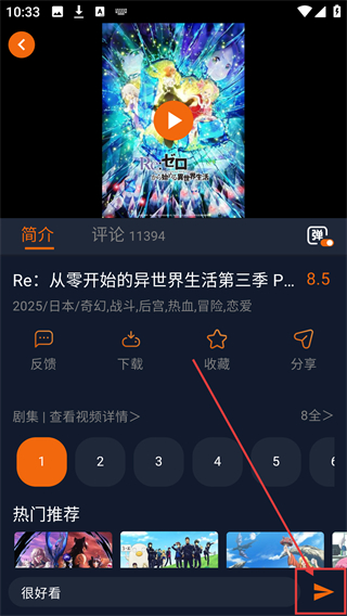 2、进入动漫详情页,在发送弹幕框输入想说的话,可参与互动啦。