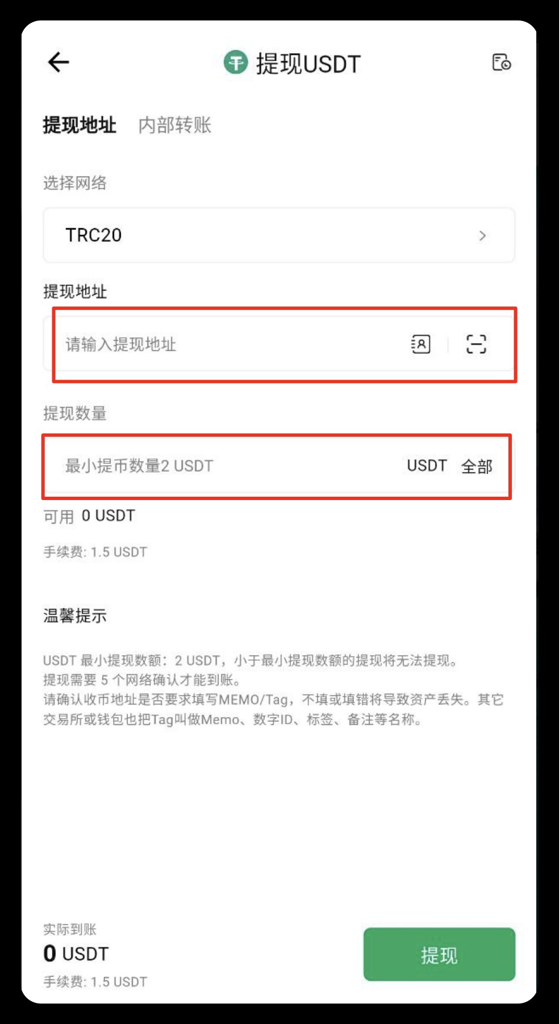 注:充值时务必核对网络和地址,确保正确无误,以免造成无法找回的情况。