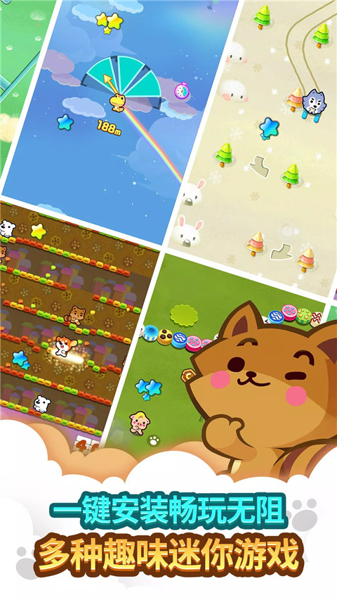 迷你迷你游戏乐园以萌趣卡通画风打造出一个欢乐的休闲闯关世界。这里汇聚射击、益智、赛车、飞行等多风格小游戏,操作简单易上手,带来全新休闲娱乐体验。游戏设置35个可爱角色与70个趣味任务,通过手指触控完成跑、跳、飞等动作。玩家在闯关过程中,能收集角色、提升角色能力,还可收集家具装扮专属基地。