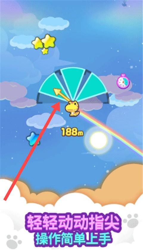 1、进入游戏,通过等待指针到蓝色区域内,点击屏幕让小动物飞到更高。