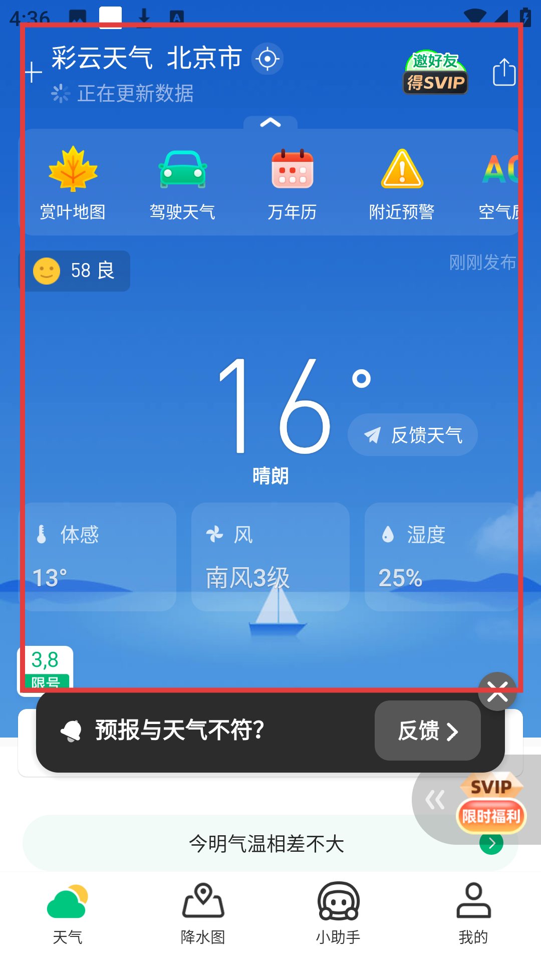 3、彩云天气小米版软件的界面是很简洁美观,给用户带来更好的使用体验,并且容易上手。