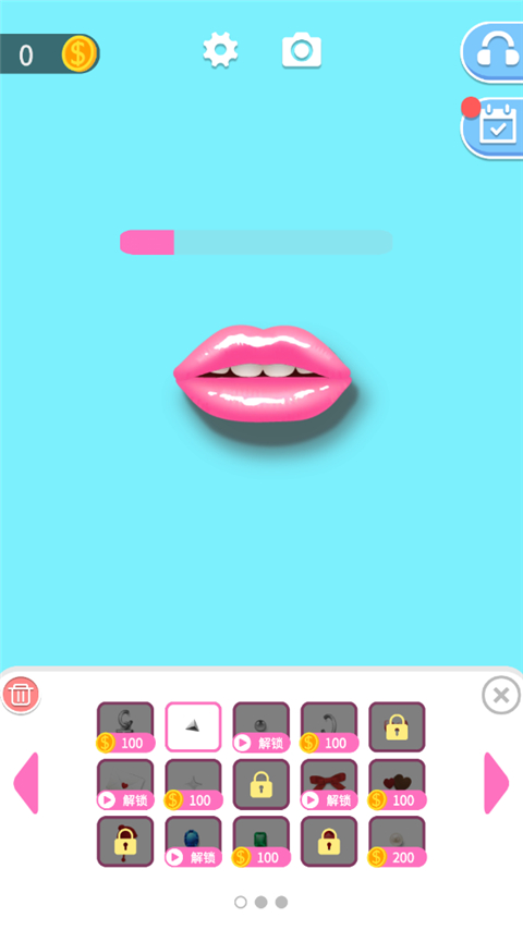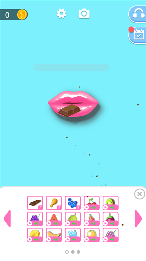 2、多元收集养成:解锁超50种食物、限定口红及配件,通过喂食升级嘴唇等级,逐步开启沙滩、古堡等新场景与互动彩蛋。