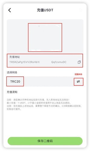 注:充值时务必核对网络和地址,确保正确无误,以免造成无法找回的情况。