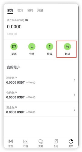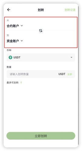 选择需要转移的账户类型(合约账户、现货账户、资金账户)。