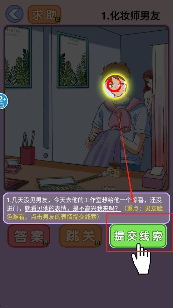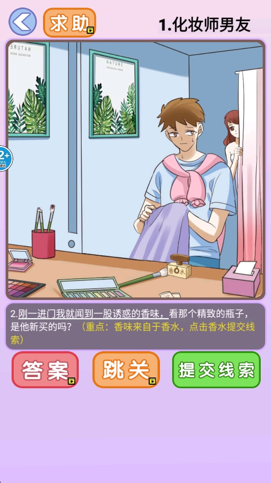 1、基础玩法是在场景中寻找可疑物品,点击收集证据,拼凑出完整的"渣男证据链"。