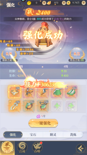 3、装备可以升级,快速提升战斗力。