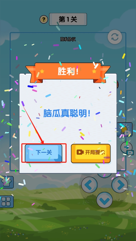 3、完成关卡后点击“下一关”继续游戏。