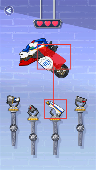 2、观察机甲缺口形状,选取对应样式的零件拖动拼接,保持【爱心】全亮以高效完成步骤。
