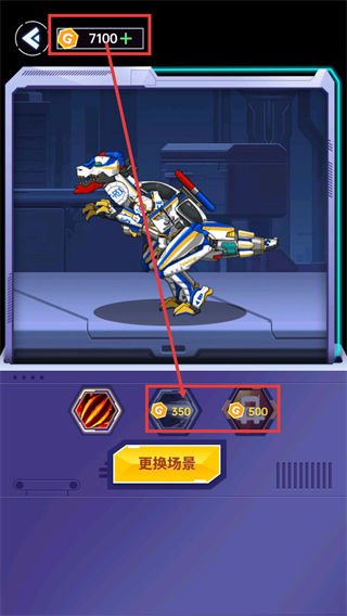 4、拼装完成后可消耗【G-350】等资源解锁功能,也可点击【更换场景】切换展示环境。