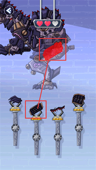 3、拼接时观察机甲缺口轮廓,选取对应形状的零件拖动,可减少【爱心】消耗提升效率。