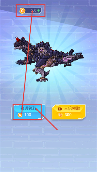 4、通关后选择【普通领取-100】获取基础奖励,也可选【三倍领取-300】获得更多资源。