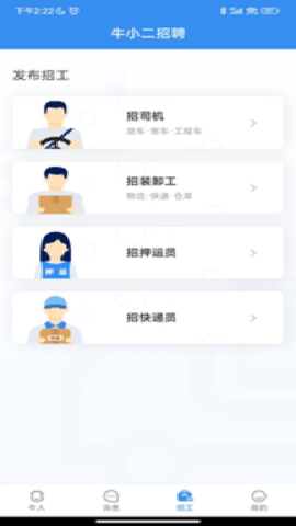 全网累计超200万司机会员,30万雇主,日更新信息近万条。找工作,不用写复杂的简历,不用苦苦等待雇主回应,直接电话联系老板,更高效、更适合卡友群体。平台建立全网黑名单,雇主拖欠工资、黑中介、司机拿钱跑路等待统统进入黑名单。牛小二招聘,放心找活,安心用人。