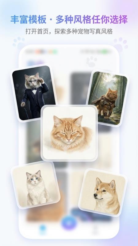 软件提供了宠物写真的一键生成,用户可以生成宠物的专属写真,实时生成宠物写真。