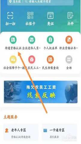 先打开APP应用首页,点击上面的待遇资格认证选项
