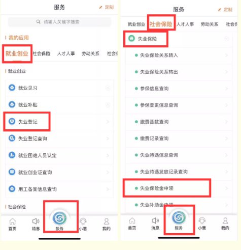首先选择就业创业栏目下失业登记模块进行失业登记。然后在社会保险栏目下失业保险金申领模块中申请。