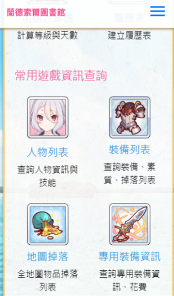 所有的游戏道具都可以在兰德索尔图书馆app中进行翻阅;
