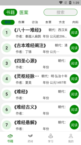 2、在主界面,用户可以浏览书籍、药材、方剂和医案等不同模块的内容。