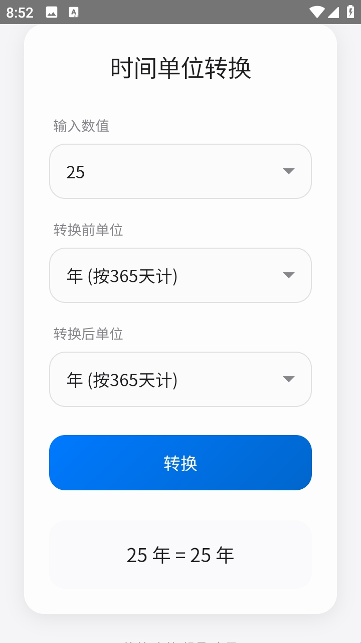 3.选择时间单位转换,输入数值、选择单位,就可以转换了