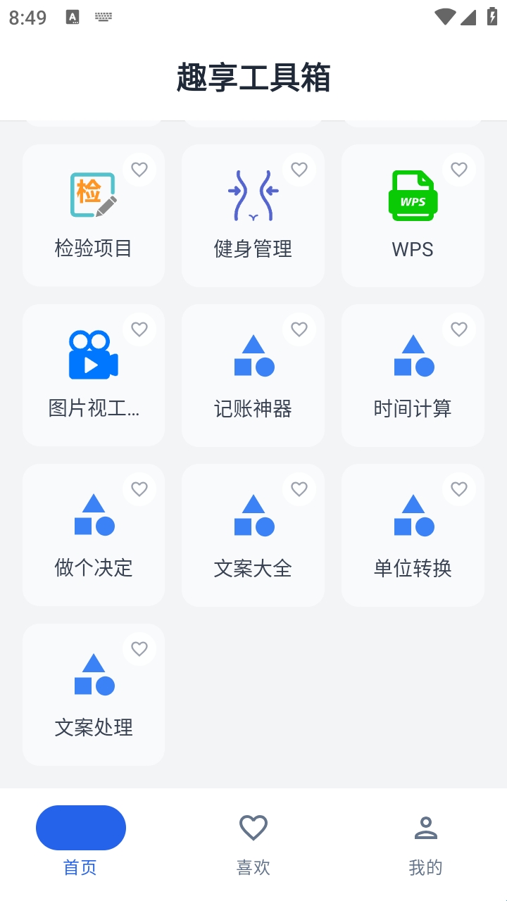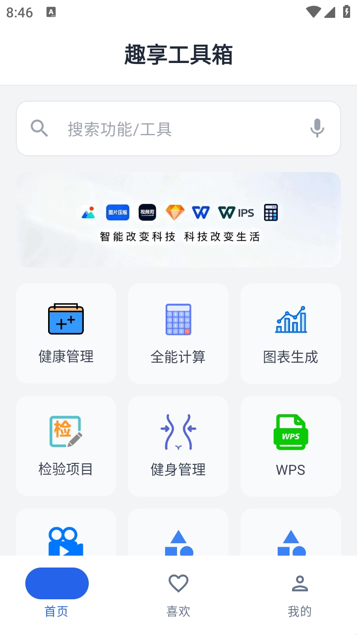 1.打开趣享工具箱App,进入首页可以看到丰富的实用工具