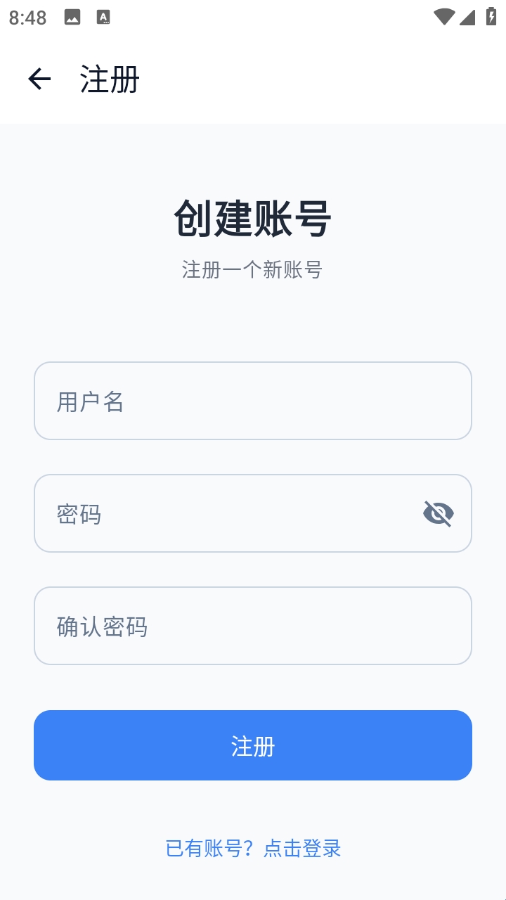 4.根据需求输入用户名、密码,点击注册即可完成