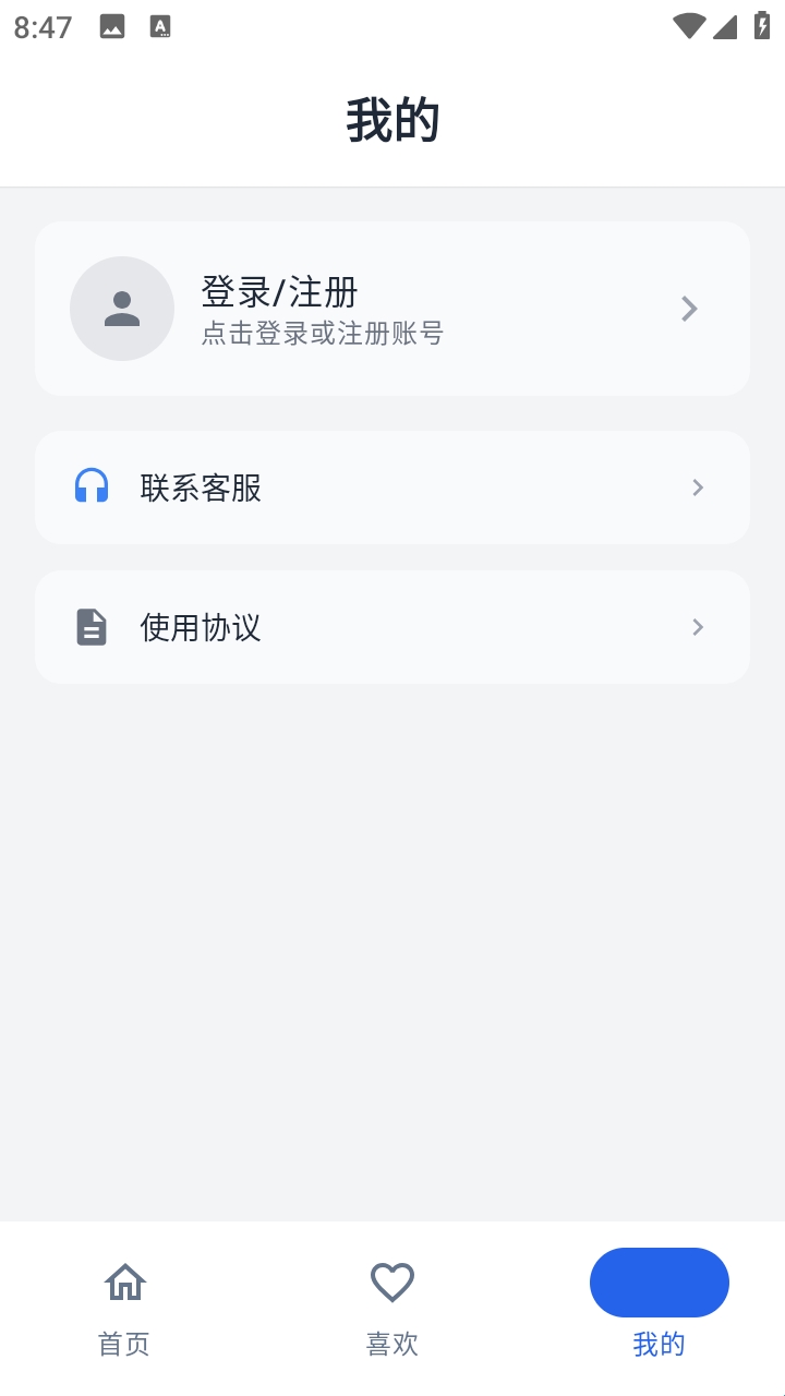 2.点击右下角我的,在我的页面中,点击登录/注册