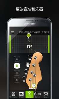 实时音高检测,快速调整琴弦音准。 2. 自动模式可识别琴弦并自动调音。 3. 手动模式允许用户自定义调音标准。 4. 提供多种调音预设,满足不同音乐风格需求。 5. 内置节拍器可调节速度和节拍类型。 6. 和弦学习功能,包含数百种和弦指法图表。