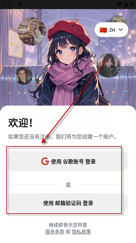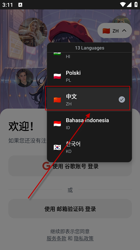 完成设置后,软件界面将切换为中文,选择“使用谷歌账号登录”或“使用邮箱验证码登录”;