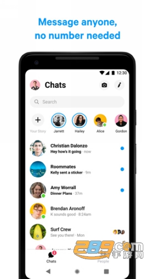 * 分享照片与视频:使用 Messenger 相机捕捉精彩时刻,添加滤镜或涂鸦,然后发送给好友或分享到快拍。
