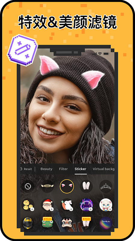 6、提供炫酷、可爱等多种滤镜,用户在视频聊天时可使用,增加互动的趣味性。