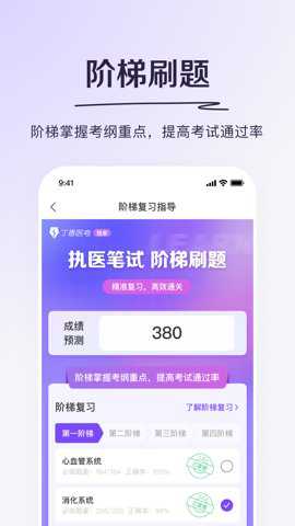 4、专为医护人员打造的应用,通过独创的阶梯复习法,帮助用户科学轻松过医考。