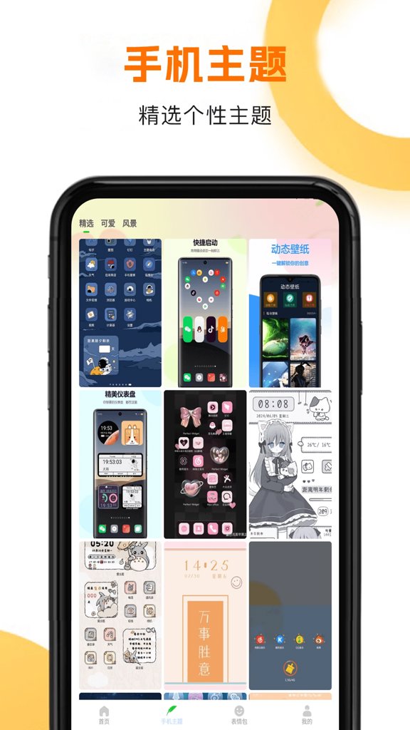 提供动态壁纸、静态壁纸、锁屏样式等多种主题元素