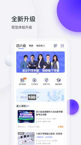 选择考试类型:进入主页,点击左上角菜单,选择考试类型,如四级、六级或考研。