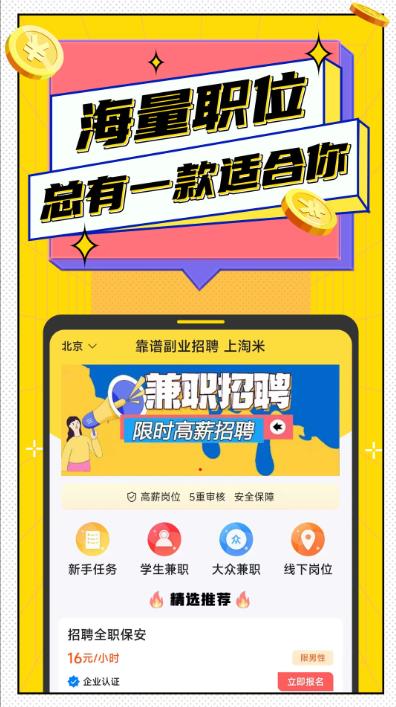 淘米兼职最新版是一款专注于兼职招聘的移动应用。