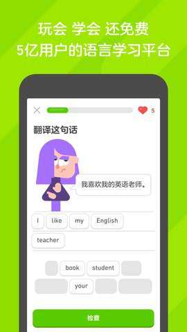 这款多邻国软件又叫做小绿鸟学英语软件,在这里去进行43种语言的学习,内置海量词汇词典,丰富多样的词汇,实时更新词典资源,先进的智能记忆运算法则,即时了解学习进度,让复习作业更加得心应手。