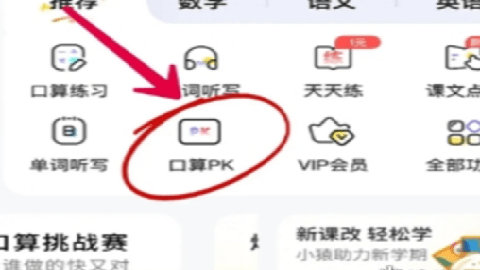 打开小猿口算APP,在主页推荐中找到口算PK功能并点击进入。